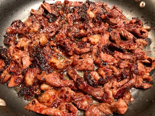 Heat a large skillet over medium high heat. Add bacon and cook until brown and crispy, about 6-8 minutes. Transfer to a paper towel-lined plate. When cool, chop into pieces. Drain excess fat from the pan, reserving one tablespoon.